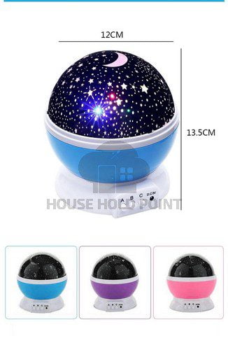 Voltage: 5V Light Source: 4 LED Bulbs Package Content: 1 x Star Projector 1 x USB Cable 1 x User manual