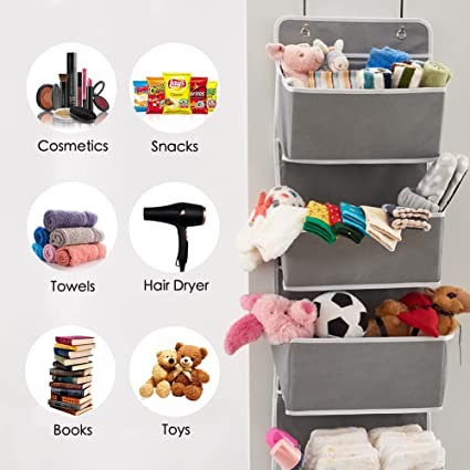 A versatile and easy to use space saver to instantly add storage over standard sized doors. Maximize storage space and clear the clutter off of counters, dressers, or floors for a tidy and safe home. The 4 hanging bin baskets are a useful storage addition for any room of your home - bed room, pantry, closet, bathroom, nursery, play room, or office. Perfect to store and access everyday essentials and keep living spaces organized.
